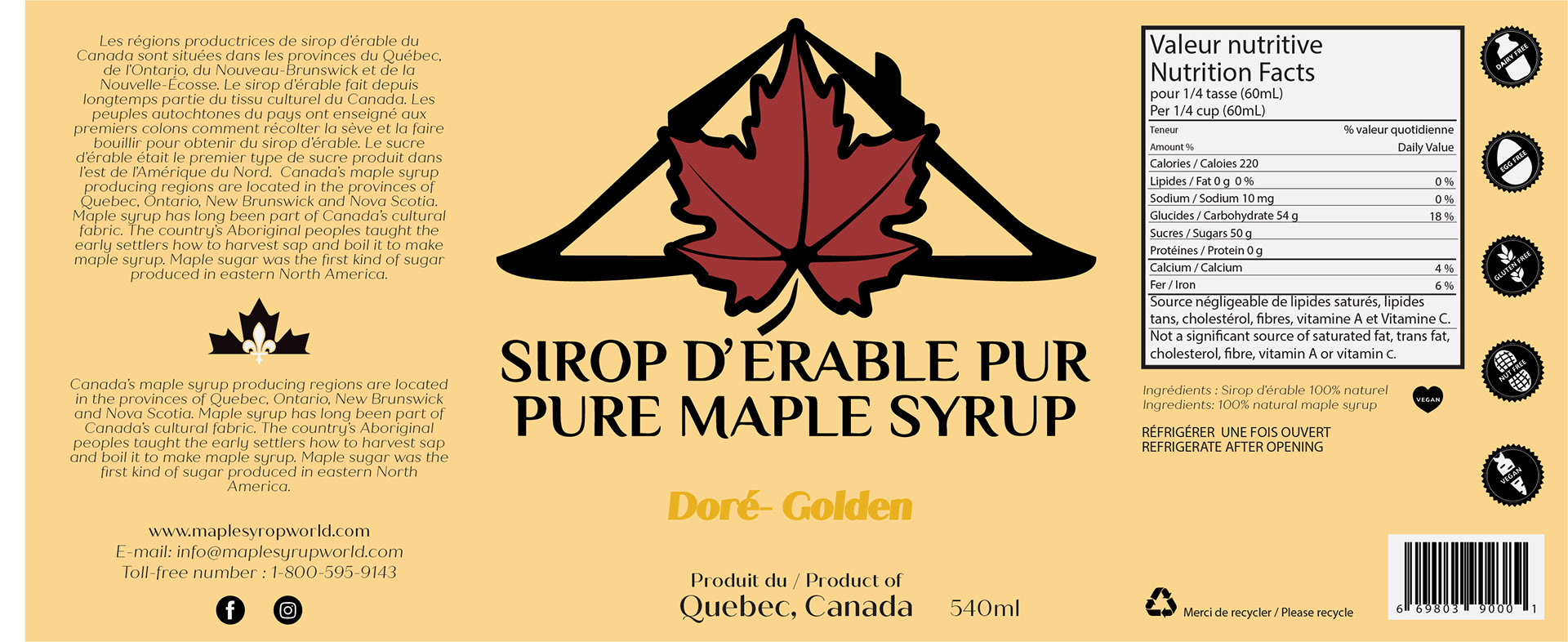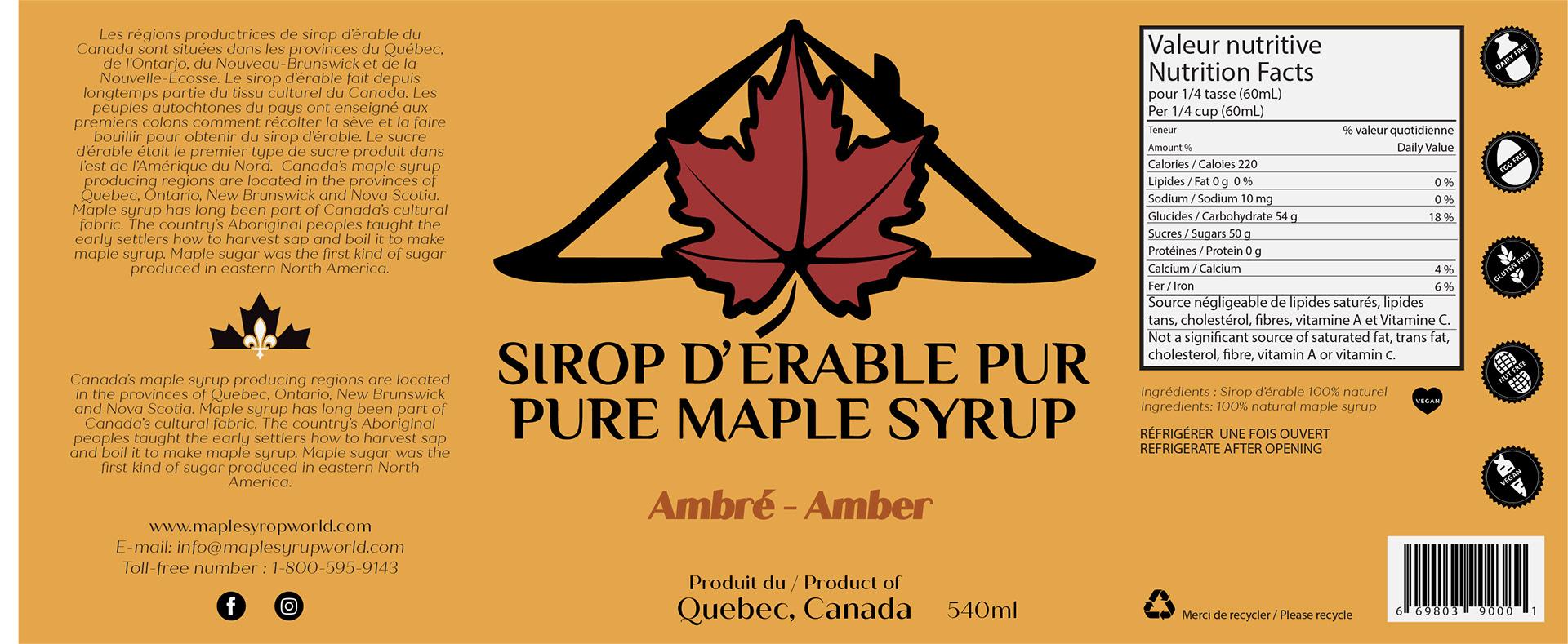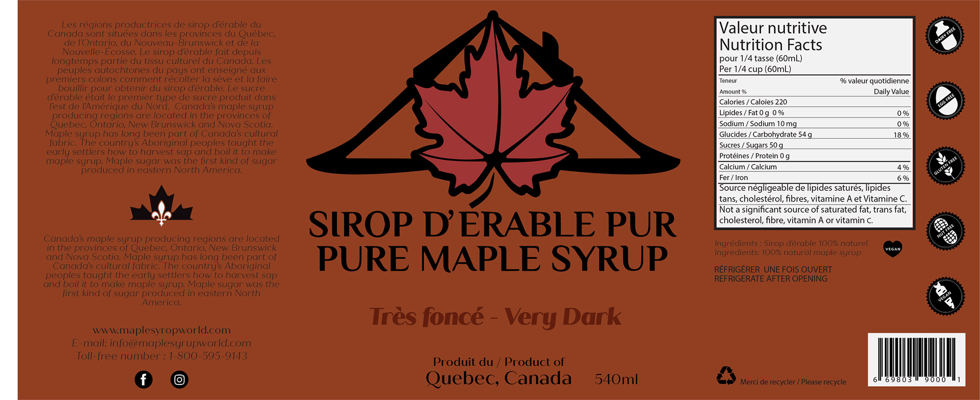 The mandate for this project was to recreate and modernize the original Quebec Maple Syrup Can packaging. I took the opportunity to also create complementary packaging for the different varieties of Maple Syrup currently on the market.